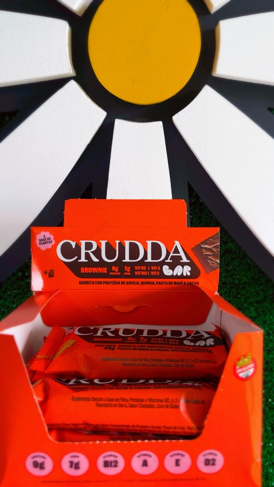 Suplemento dietario a base de fibra, proteinas y vitaminas B12, A, E y D2 con baño de reposteria en barra